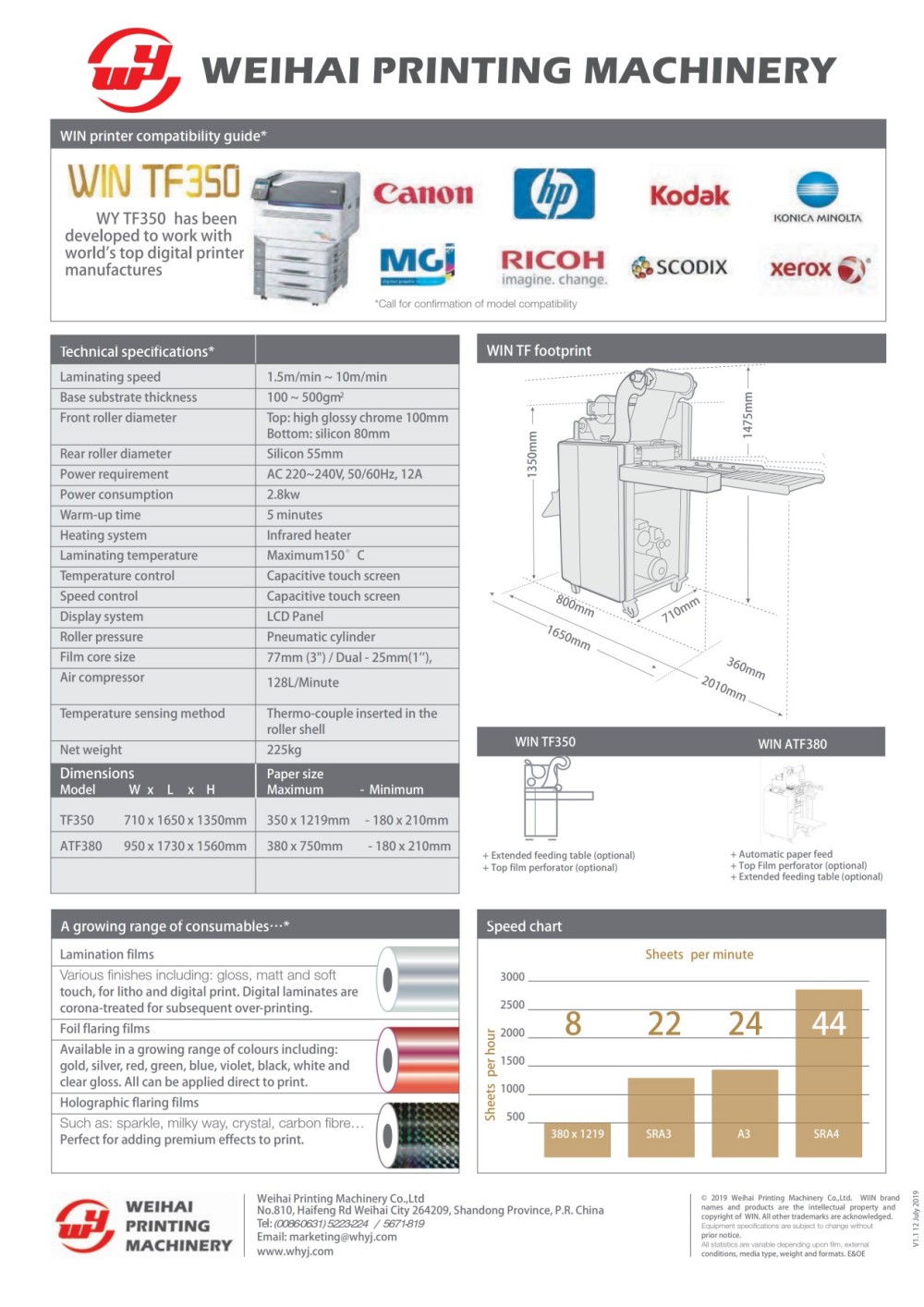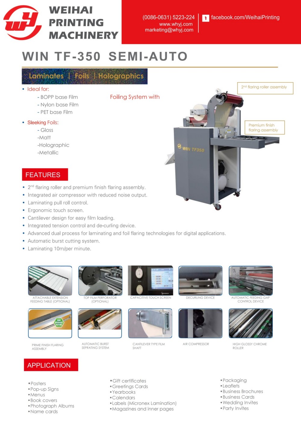 Машината за ламинирање и фолирање со рачна напојување е рачна опрема за ламинирање и фолија за метал што се храни со хартија, дизајнирана и произведена од Weihai Printing Machinery Co., Ltd. Може да конвертира обични печатени материјали во извонредни готови производи со висок квалитет и е целосно компатибилен и со дигиталните апликации на барање и со традиционалните литографски офсет отпечатоци. За да се обезбедат оптимални резултати од обработката, машината е опремена со електронски контролен уред кој го прилагодува притисокот на валјакот и температурата на греењето за време на работата според клучните променливи како што се брзината на работа, дебелината на хартијата и шемите на дизајнот. Како опрема за топло штанцување и ламинирање со рачно внесување со високи перформанси, потврдено е дека значително ја подобрува додадената вредност на производите на клиентите. Клиентите можат да изберат од широк спектар на ламинирачки фолии и метални фолии за да ги исполнат различните декоративни барања. Покрај тоа, тој е опремен со продолжена маса за хранење хартија за да се сместат банери и екстра долги печатени материјали.